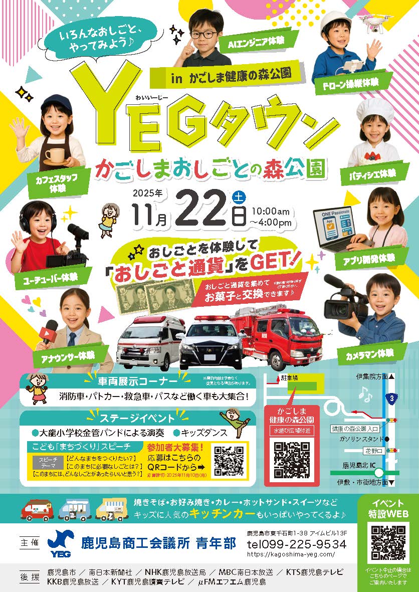 鹿児島商工会議所青年部(YEG)は、子どもたちに“働く楽しさ”を伝える体験イベント 「YEGタウン~かごしまおしごとの森公園~」を開催します!