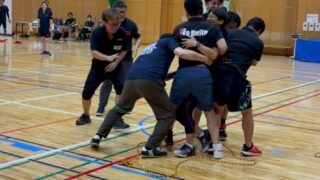 令和7年度8月例会「熱量MAX!脱落上等 イカゲーム風交流バトル」を開催しました。 2025.09.032025.11.03 令和7年8月27日、勤労者交流センター体育館にて、鹿児島商工会議所青年部(YEG)による8月例会「熱量MAX!脱落上等 イカゲーム風交流バトル」が開催されました。 令和7年度 鹿児島商工会議所青年部会長 濵田武久君より会長挨拶がありました。 続いて・・・ 仮装している委員会メンバーの皆さんを引き連れて、交流委員会 斎藤士門委員長による事業概要の説明がありました。 各ゲーム開始時に交流委員会メンバーでルール説明があり、見本も見せてもらいました。5人6脚で足を結ばれているなかでのけん玉やリフティングなどなど。簡単そうに見えたのですが・・・ 参加チームの一コマです。楽しそうな表情ですね。 全部クリアした人→ 人気ドラマをモチーフにしたゲーム形式の交流イベントとして、会員がチームに分かれ、体を動かしながら多彩な競技に挑戦。真剣勝負の中にも笑顔と笑い声があふれ、互いに助け合う姿が印象的でした。今回の事業は、非日常の体験を通じて会員同士の自然なコミュニケーションと信頼関係を深めることを目的としたもので、全員が心から楽しみながら一体感を感じる貴重な時間となりました。終了後の懇親会でも活発な交流が続き、今後のYEG活動に向けた熱い想いを共有しました。鹿児島YEGは、今後も地域に根ざした活動を通じて、更なる連携と成長を目指してまいります! 懇親会は、ホテルユニオンに! 懇親会場でも夏祭りでお馴染みの型抜きなど催しがあり、大いに盛り上がりました。交流委員会の皆様、楽しい時間をありがとうございました!(担当:下川、東島)