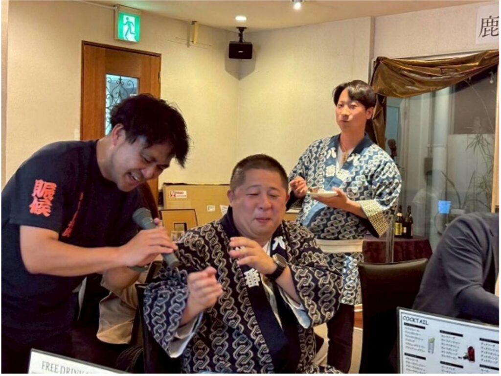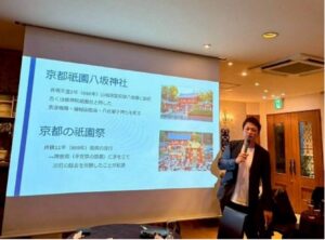 例会後の懇親会では薩摩祇園八坂神社 宮司 岩切一真様にお越しいただき、おぎおんさぁの歴史についてご講演いただきました。