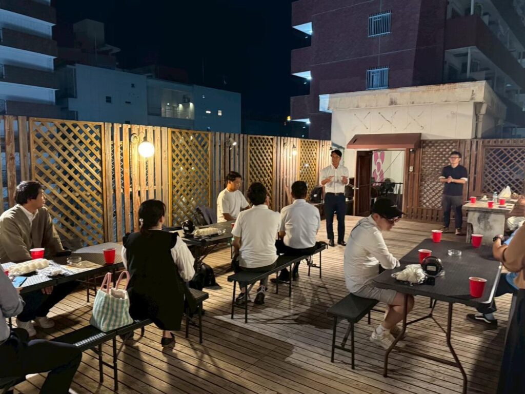 月見会開催! 2026.02.16 10月2日(木)、鹿児島商工会議所青年部(以下、YEG)の入会1年未満のメンバーで構成される「ルーキーズ」による、親睦を目的とした「月見会」がSea Terraceにて開催されました。 今回はスペシャルゲストとして、濵田会長と山内専務をお招きし、ルーキーズが直接交流できる貴重な機会となりました。 絶好の天候に恵まれ、屋外でのバーベキューを楽しみながら親睦を深めた後、メインイベントのレクリエーションがスタート。ルーキーズの会長・副会長が中心となり準備した「ルーキーズ版・格付けチェック」が行われました。目隠しをして味を当てる問題や、「プロの画家 vs AI」の絵画判別など、趣向を凝らした難問が続出。参加者は自信満々で挑んだものの、予想以上の難易度に会場は大盛り上がり。 濵田会長も前半戦に参戦されましたが、用意された難問の数々にあえなく玉砕!会場は大きな笑いと親近感に包まれ、非常に和やかな雰囲気のなか別会へと送り出すことができました。 激戦(?)の結果、見事優勝に輝いたのは研修委員会の川畑皓朗君でした! この会を通じて、ルーキーズメンバー間の距離がぐっと縮まり、これからの活動に繋がる素晴らしい交流の場となりました。企画・準備をしてくださった設え担当の皆様、本当にありがとうございました。今後もルーキーズでは、メンバーの絆を強める様々な事業を企画・実施してまいります。皆様、引き続きルーキーズの活動を温かく見守っていただければ幸いです。担当:小倉